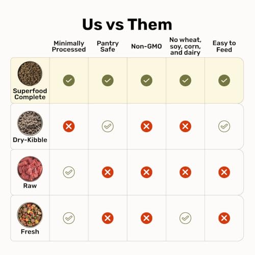 - Superfood complete ingredients are cooked responsibly at low temperatures and air-dried for maximum nutritional value.