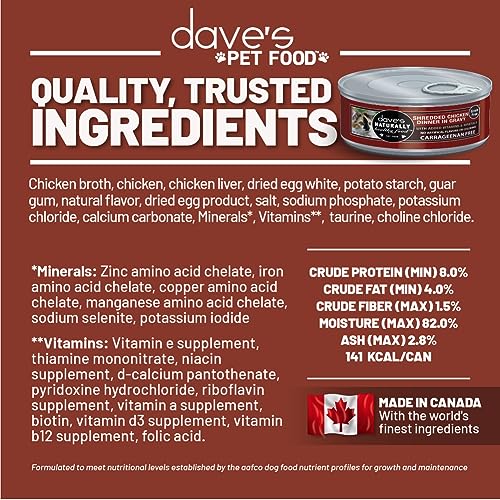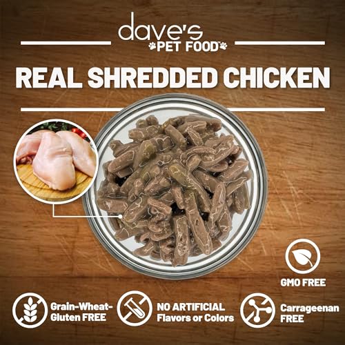 Dave's Pet Food Grain Free Wet Cat Food Bundle, Shredded Chicken in Gravy, Shredded Salmon in Gravy, Chicken Formula, Chicken & Duck Saucey Pate, Made in USA & Canada, 5.5 oz (24 Pack Each)
