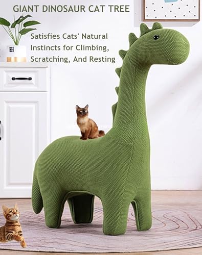 • Dinosaur Cat Tree : Our Giant Dinosaur Cat Tree Features Green Dinosaur Design, Perfectly Satisfies a Cat's Natural Instincts for Climbing, Scratching, And Resting. Let Your Cat Roam Freely While Preventing Damage to Sofas, Curtains, And Other Items, Saving Your Expensive Furniture.The Three-Dimensional Structure of the Dinosaur's Back and Tail (80cm High) Can Be Designed as a Stepped Climbing Path, Catering to a Cat's Natural Tendency to Climb and Survey, While Also Being a Favorite Home Decor Item for Children.