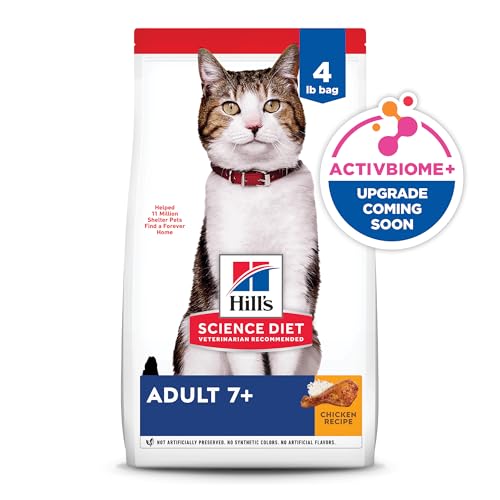 Hill's Science Diet Adult 7+, Senior Adult 7+ Premium Nutrition, Dry Cat Food, Chicken Recipe, 4 lb Bag