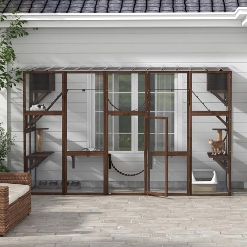 - Weather Protection: Even in the rain, kitties will be able to enjoy being outside. Raindrops will slide right off the angled PC board roof, and the full coverage will ensure cool shade
