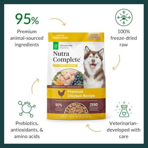 - HIGH QUALITY CHICKEN – Premium, cage-free chicken and organs make up 95% of Nutra Complete. Our chicken is 100% freeze-dried, so your dog gets easily digestible protein from every bite.*