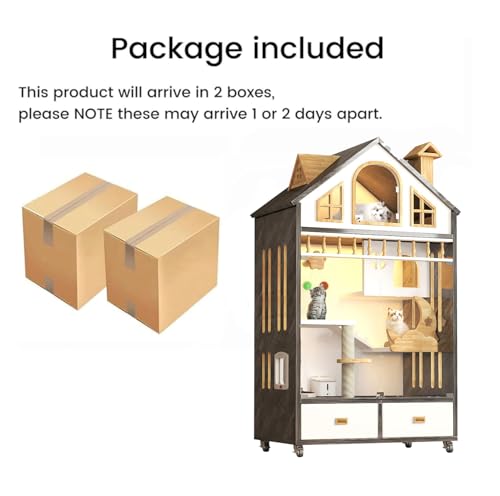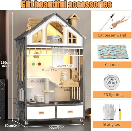 • 【Glass Visible Door & Super Accessories】The door of the cat apartment is made of glass material, which has high clarity and transparency, allowing you to observe the cat; Equipped with 3 LED lights to make it easy to observe the cat's movements at night, while we also provide fun cat sticks and cat pads to keep your pet entertained.