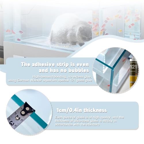 - 【Premium Stable Structure】This aquarium-grade cat furniture is made of 0.4in Jinjing ultra-clear glass with excellent light transmittance and smooth edges. It can accommodate small fish/turtles while providing a scratch-proof crawling space. There are no sharp corners to ensure stress-free play for indoor cats.